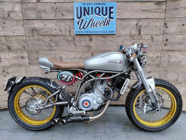Latest variant of bespoke British single adds ‘40s balloon bobber tyres to lightweight chassis and punchy ex-enduro engine and is arguably the best yet. Stylish and fun but limited practicality.