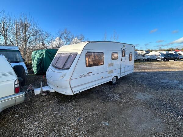 6 berth | Single Axle | Fixed bunk beds | End dinette | MTPLM: 1447kg | L:7.5 x W:2.5 x H:2.5