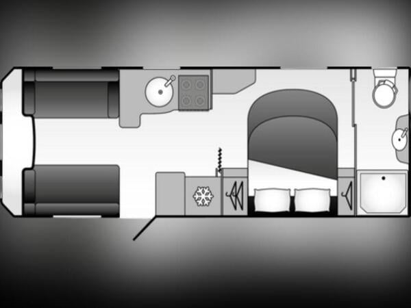 2 berth | Single Axle | Lounge Conversion | End washroom | MTPLM: 1444kg | L:6.38 x W:2.31 x H:2.67