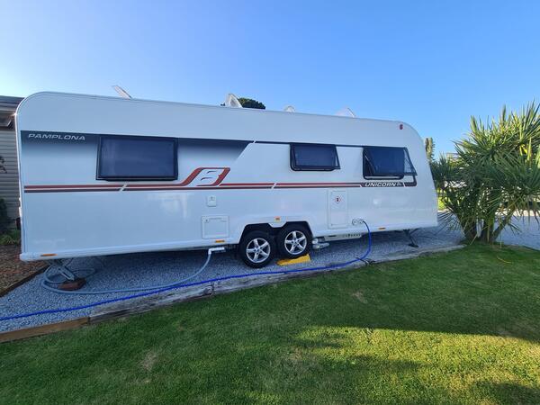 4 berth | Single Axle | Fixed island bed | End washroom | MTPLM: 1495kg | L:7.3 x W:2.3 x H:2.6