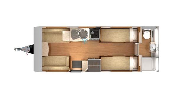 4 berth | Dinette conversion | End washroom | MTPLM: 1485kg | L:7.31 x W:2.33 x H:2.6