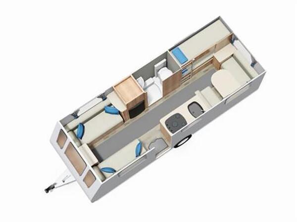 6 berth | Fixed bunk beds | End dinette | MTPLM: 1317kg | L:5.25 x W:2.18 x H:2.81