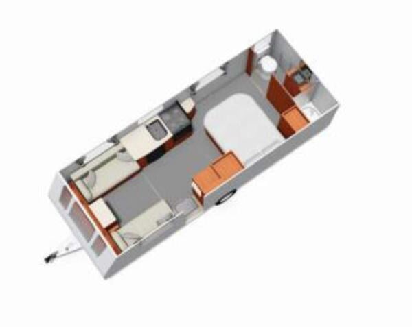 4 berth | Double Axle | Fixed single beds | End washroom | MTPLM: 1940kg | L:7.8 x W:2.26 x H:2.49