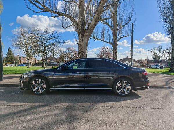 Every surface you see, touch or interact with in the Audi A8 is absolutely dripping with tactile and sensory appeal, and the way in which it’s all assembled is so solid, so substantial, and displays so much attention to detail that you’d swear it’ll last forever. The cabin also has a sharp, contemporary design that gives it an advanced, cutting-edge feel, and that’s helped no end by the vast amount of technology on display. Audi’s ‘Virtual Cockpit’ digital dials are present and correct, as is a head-up display and two gigantic touchscreens on the centre console that deal with pretty much all the car’s complicated functionality. The buttons and dials that once helped you to use the function you wanted are no more. Not only do the touchscreens look really cool, but the graphics are super-sharp, and the software works really quickly. However, with the vast amount of different functions the system has to deal with, it will take a while to get used to finding your way around its finer points. On the other hand, finding a comfortable driving position is a piece of cake, because there’s electric adjustment on just about everything, and you have a clear view out in all directions, which is essential when you’re driving a car of such colossal size. What’s more, there are cameras and proximity-sensors all over the place to tell you if you’re getting uncomfortably close to an obstacle when parking. The A8 is the largest car in its class in every direction. That means absolutely bags of legroom where it counts – in the rear seats – and there’s even more in the long-wheelbase version. Rear headroom is also very generous and there’s plenty of space up front for the chauffeur, too. At 505 litres, the boot can accommodate three full-size flight cases, rather than just two and some extra small baggage. It’s a fraction smaller than those in the BMW 7 Series and Mercedes S-Class, but it really is only by a fraction. Any limo worth its salt needs an effortlessly comfortable ride and effective isolation from the noises of the outside world. On the first point, the A8 does a brilliant job. You get a sophisticated air suspension as standard, and when you set it to Comfort mode, it’s simply brilliant at absorbing lumps and bumps in the surface so you barely even notice them. It also delivers just the right amount of vertical travel, so you feel as if you’re wafting along luxuriously, but without the body feeling like it's bouncing around too much. Switch through the modes into the sportier settings, and the ride quickly becomes a good bit firmer, but you do get tighter control over body movements in return. That makes the car feel sharper along winding roads, and when combined with the impressive grip and traction you get from the standard four-wheel drive, it feels impressively capable and assured through a set of bends. However, this is a truly enormous car, and you’re always very aware of that size, especially on single-carriageway roads. The A8 is good on the noise front, too, with barely any road noise and only the odd burble from the engines when they’re asked to work a little harder. There’s a shade more wind noise that you hear in a Mercedes S-Class, but it’s nothing that’ll distract those in the back from their laptops or copies of the FT. If you’re willing to pay extra, there’s also an optional suspension system that’s even cleverer. It uses the car’s cameras to detect the size and shape of upcoming bumps in the road, and then it primes electronic actuators on each of the four wheels to raise or lower them as necessary to deal with the bump most effectively. It’s clever stuff, but we’ve not had the chance to try it out yet.
