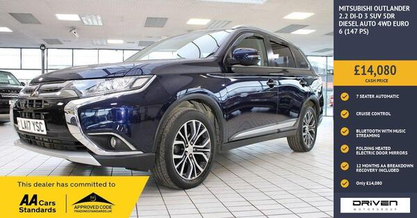 Skip to contentSkip to footerWith 139 used 2017 Diesel Mitsubishi Outlander SUV cars available on Auto Trader, we have the largest range of cars for sale available across the UK.