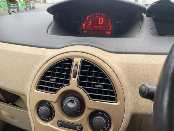 You sit up high in the Modus, with a great view out of the road ahead. Front three-quarter vision is marred by rather large A-pillars. The design of the dashboard is looking a little dated now, but is brightened up by metallic trim across the centre console. The digital speedometer is easy to read, but the radio is mounted too far down, although thankfully Renault offers steering wheel controls.
