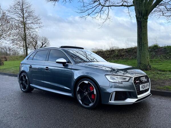 Just one glance at the Audi RS 3 is enough to tell you that this is a very high-performance A3. Not only is the car wider and sits lower to the ground than the regular A3 Sportback it’s based on, it’s also positively overloaded with features that will earn you lots of ticks in the 'I Spy' book of hot hatches. There’s the unique RS bodykit, for a start, featuring extended side sills, a honeycomb grille, and spoilers front and rear. Then, to top it off, the car has aluminium-look door mirrors, twin oval tailpipes, and LED lights all-round.