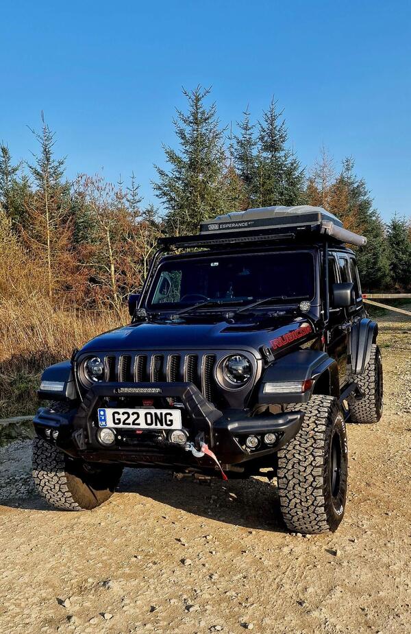 The Wrangler’s interior is utilitarian in its design, and it’s also highly functional. You sit close to the near-vertical windscreen, with the door shutting right up against your side, which is pretty unique, but ultimately less comfortable than more conventional SUVs. The centre touch-screen is within easy reach and surrounded by a rugged rubberised frame. Below this are the easy-to-use climate controls. Between the front seats, and almost as large as the gear level, is the selector for the four-wheel-drive system. The Wrangler’s cabin is designed to be washable, though we don’t fancy trying to get dried mud out of all the nooks and crannies.