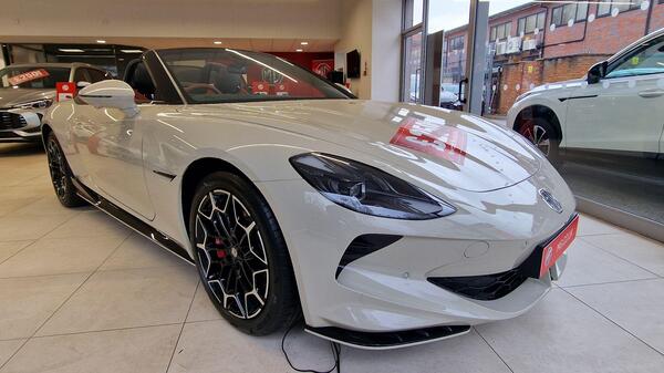 Bravo to MG for keeping it simple here, on the basis both single-motor Trophy and twin-motor GT have exactly the same equipment levels and the price premium for the latter is purely about the extra performance. Colours other than the standard white come at extra cost and, on some of them, you can have red fabric for the roof if you wish. On both models the spec is very generous, with a standard fit Bose stereo system, heating for seats and steering wheel, power adjustment and lumbar support, a wind deflector between the seats to keep turbulence to a minimum when the roof is down and even a ‘vehicle to load’ function so you can turn your car into a giant power bank with a three-pin socket adaptor on the charging port to power any domestic appliance. While the upholstery is faux rather than real leather the fit and finish all looks pretty good, and a big step up from regular MGs. Inevitably there’s lots of tech as well, with a clear and simple digital instrument display flanked by two smaller screens packed with baffling amounts of information we didn’t feel we needed and couldn’t read anyway because the text is too small, the interface clunky and a good portion of both is obscured by your hands on the steering wheel. Unfortunately, that includes the nav display on the left, meaning you have to crane your neck to see where you’re going.
