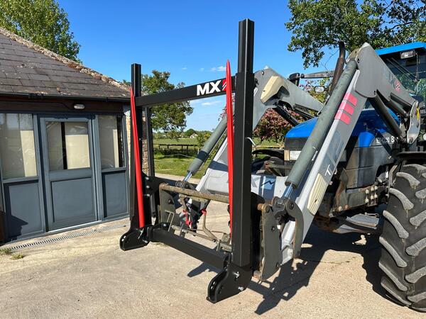 New MX L400 fold up twin spike, adjustable height back rest, on euro brackets, 1250KG capacity. Also available with fold up centre tine and MX brackets