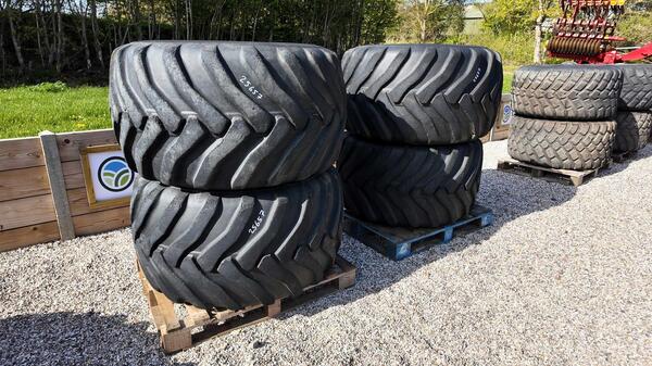 Rims to fit 10 stud commercial axles. Fitted with 3 BKT FL693M and 1 Alliance 882 Agri Transport tyres. all with good tread remaining. Hub Fitment: Center bore: 281mm, PCD: 10 x 335mm, Stud size: 25mm