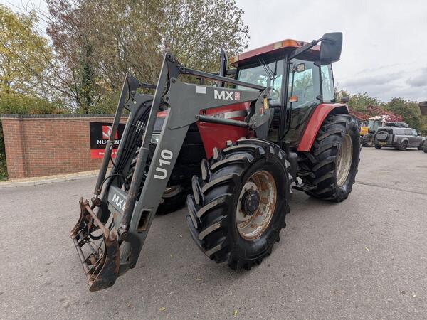 Case MXM120 tractor. Year 2004, 8504 hours, 4 spool valves, 540/540E/1000 PTO, air seat, air con, passenger seat, complete with MX U10 loader, with joystick control, 3rd service, and soft ride.