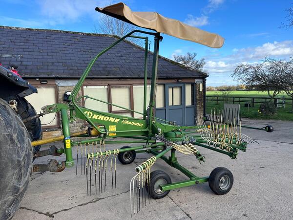 Krone Swadro 46 single rotor rake in very good condition. Year 2013, 4.6 metres working width. Road lights, adjustable swath curtain, very nice rake, comes with operators manual