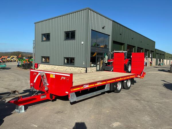 JPM Red 24ft Low loader Trailer Year 2026 New Unused Filled in Ramps Sprung draw bar Oil brakes Tyres 215/75R17.5 LED lights Strap box Ready to go £10,750+vat