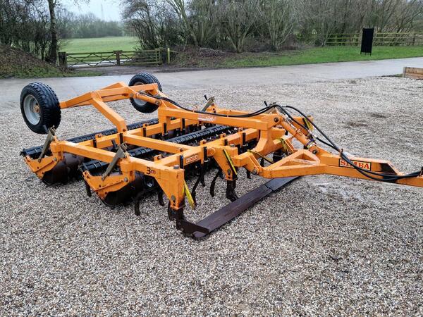 23 VibroFlex tines at 23.5cm spacing. Hydraulic folding with a 3m transport width and comes with 2 depth wheels. The outer 2 tines have been removed giving it a working width of approx. 5.4m. With the outer tines...