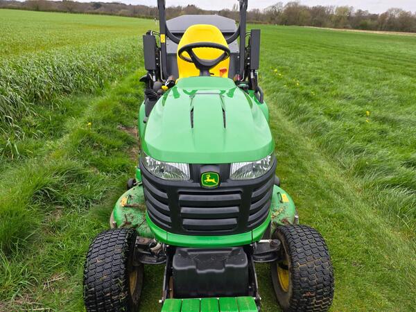 JOHN DEERE X950R DIESEL COMMERCIAL RIDE-ON MOWER. 2020 MODEL WITH ONLY 100 HOURS. 24HP ENGINE, 48-INCH DECK, AND STANDARD LOW-TIP COLLECTOR. INCLUDES 4 FRONT WEIGHTS FOR SUPERIOR STABILITY. LOW-HOUR, NEAR-NEW COND...