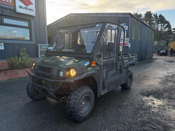 Model: Kawasaki Mule Pro DX Type: Utility Vehicle (UTV) Fuel: Diesel Hours: 1196 Mileage: 4510 miles Features: Roof and windscreen included Condition: Used – good working order