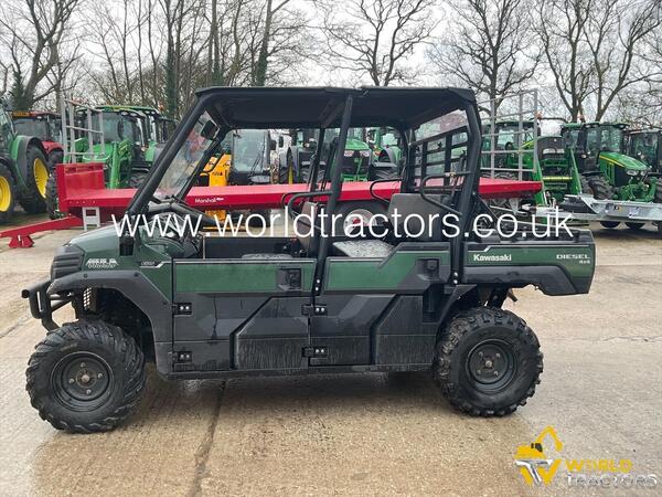 Model: Kawasaki Mule Pro DX Type: Utility Vehicle (UTV) Fuel: Diesel Hours: 1196 Mileage: 4510 miles Features: Roof and windscreen included