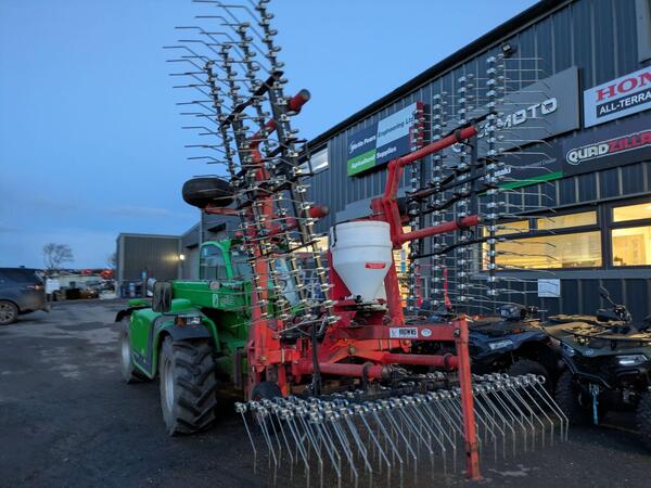 Browns 6m Tine Harrow with Stocks Varispeed Fan Jet Broadcaster Mk 4. Condition: done little work and is in tidy order.