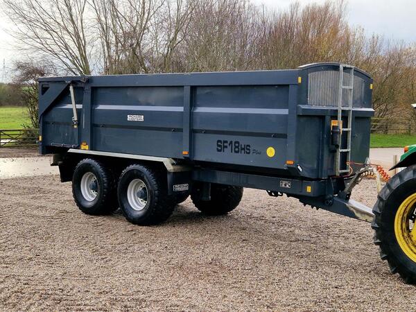 C/w hydraulic tailgate. Well built trailer fitted with a sprung drawbar, rocking beam axles, greedy boards and hydraulic trailer brakes. Single tipping ram and fitted with super singles. A solid graintight traile...