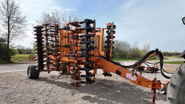 Disc - tine - disc configuration. Fitted with Pro-Active angle adjustable discs, 12 sprung ST tines and rear DDL packer.  Fitted with hydraulic brakes and rear drawbar. A good frame but needs attention before go...