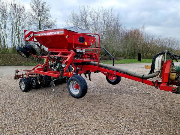 Upgraded to ISOBUS control. C/w PTO driven fan, front depth wheels, 16 tine coulters at 250mm spacing, tramline shutoff, bout and pre-em markers and rear tyre packer. Folds to 3m for transport. Serial no: 330605...