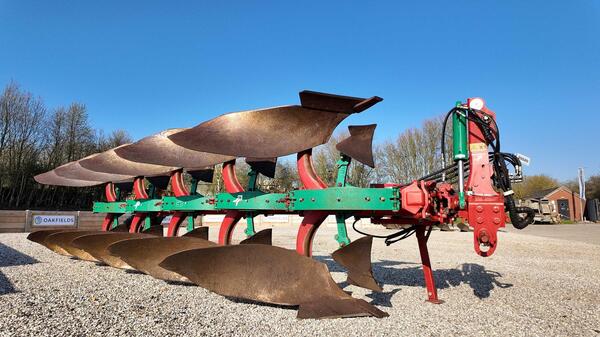 Hydraulic front furrow adjustment. A good straight plough with hydraulic front furrow and hydraulic vari width adjustments. Fitted with No. 28 Bodies with plenty of life remaining, full set of skimmers and rear s...