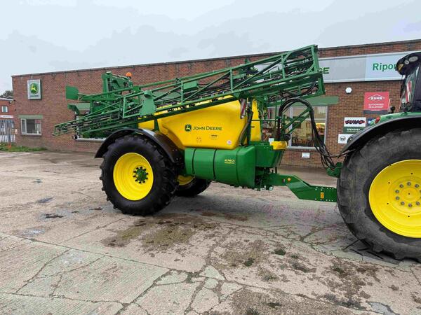 c/w power spray system, contactless steering, Isobus control, 12/24m boom, 8 sections, individual nozzle control, JD terrain control, 2 sensors, breakaway protection, boom suspension, hydraulic brakes, 520/85R38 t...