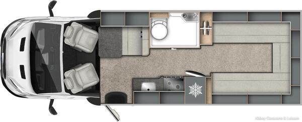 3 berth | End dinette | 4 belted seats | L:5998 x W:2500 x H:2670