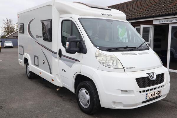 Elddis Accordo 125 Peugeot Boxer 2.2 Hdi, 2 berth, 4 belts, Anniversary Edition, Tow bar, Awning, Reversing Camera, Cab AC, Cruise Control, Low Mileage