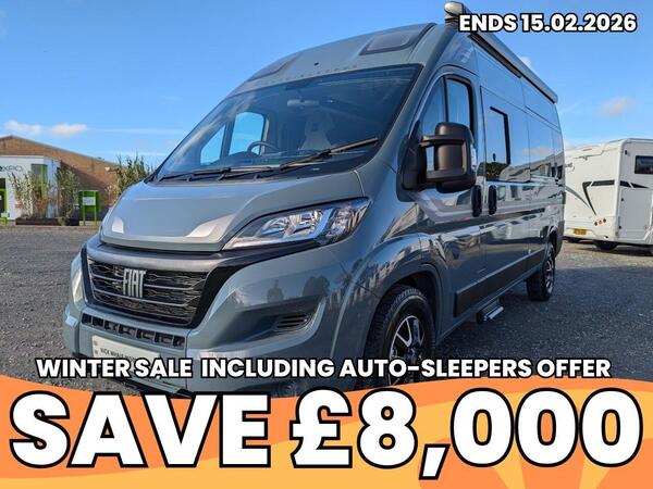 2 berth | End kitchen / washroom | Manual | 2.3L | 140BHP | 3 belted seats | L:5.99 x W:2.26 x H:2.64