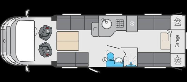 6 berth | End lounge | Manual | 2.3L | 128.7BHP | 4 belted seats | L:8.22 x W:2.36 x H:2.86