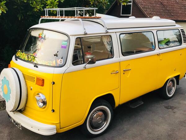 Volkswagen Transporter VW Bay Campervan in yellow and white 2.0