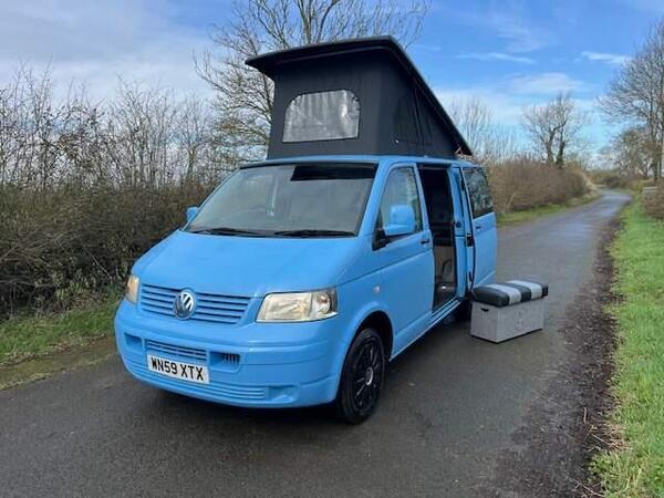 Volkswagen VW VOLKSWAGEN TRANSPORTER 1.9 TDI TURBO DIESEL SWB T5 4 BERTH CAMPER VAN IN RARE FACTORY DANISH BLUE!!!