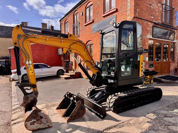2023 Sany SY35U excavator with hydraulic quick hitch & 3 buckets, zero tail swing with air con, heater & radio, piped to take rotating grab, auto throttle. Supplied with new tracks, fully serviced and prepared to...