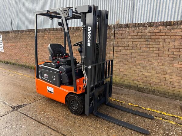 2018 Doosan 1.3t electric forklift, container spec triple mast with sideshift. Only 1800 hours from new. New tyres all round. Excellent working order and very well maintained just had a full service ready to go De...
