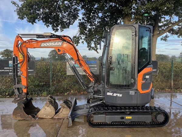 Doosan DX27Z-7 With 609 Hours. Two Speed Tracking, Heated Cab, Hammer Piped, Amber & Green Site Beacons, Radio. Supplied With Hydraulic Q- Hitch & 3 Buckets.