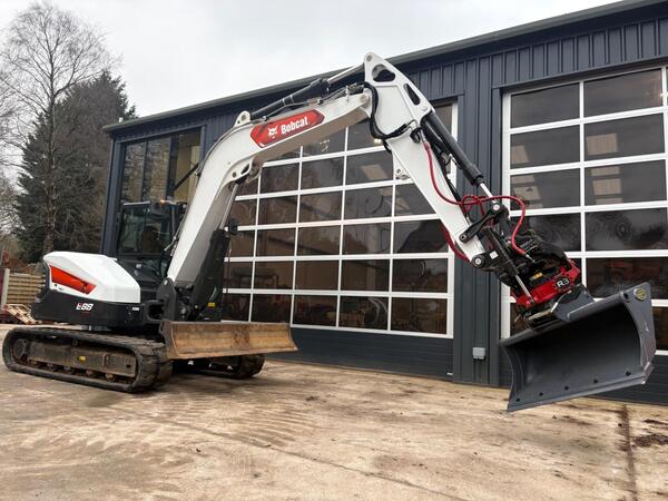 Bobcat E88 – 9 Tonne Midi Excavator Year 2022 Hours 1583 Weight 8920kg Supplied with Rototilt R3 tilt rotator with Joysticks and top hitch. New Strickland Scandinavian grader Spec is Air conditioning, Hammer li...