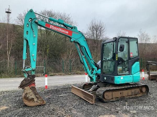 2017 Kobelco SK55SRX-6 Mini Excavator: <6.6t Enclosed Cab, Air Conditioner, Swing Boom, 1920 mm Stick, Auxiliary Hydraulic Plumbing, Stick Check Valve, Boom Check Valves, Backfill Blade, 400 mm Rubber Tracks, Hyd...