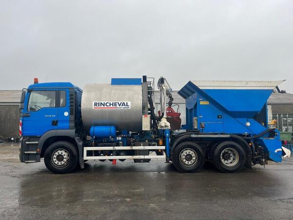 2003 MAN TGA 26.350 2-in-1 Tar & Chip Lorry + Hiab Grab - 5 Ton Tank - 3.7m Spread - Only 70k Miles - Full Description (ready to copy/paste) Rare genuine 2-in-1 tar and chip resurfacing lorry on a 2003 MAN TGA 26...