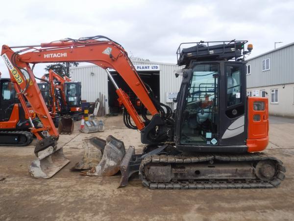 HITACHI ZAXIS 85 USB-6 . AIR/CON, CHECK-VALVES, HAMMER LINES, DOUBLE LOCKING HYDRAULIC QUICK-HITCH + 3 BUCKETS, RUBBER BLOCKS 60%, COLOUR REAR CAMERA, 1 OWNER FROM NEW WITH FULL HITACHI SERVICE HISTORY.