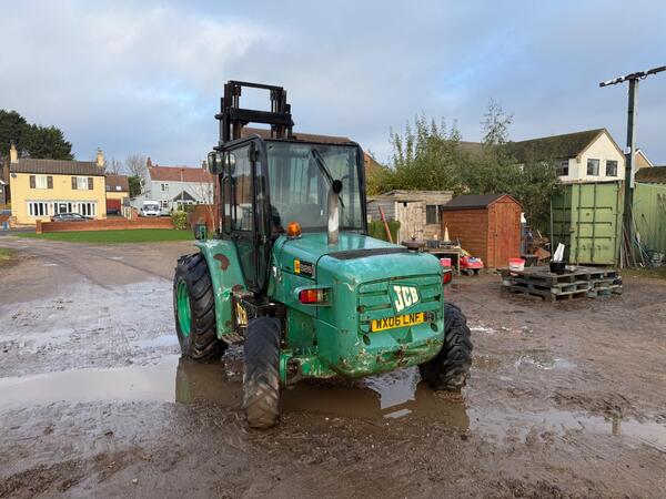 JCB 926 All Terrain Forklift, 2005 Good machine, drives well. Great for use on uneven surfaces. Year 2005 Hours - 4934 2.6 ton lift capacity 3.6 metre lift hight Good tyres Pallet forks 4WD all wheel drive Smoot...