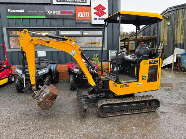 JCB 16C-1 T3 Compact Excavator 708 hours. Comes with three buckets. Model no. 16C-1 T3 Operating weight: 1653 kg Engine power: 12.2kW@2800RPM Year of manufacture: 2022