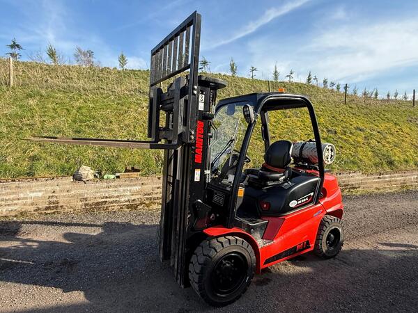 Manitou 2.6t diesel 4x4 rough terrain forklift, part cab, forks and tipping bucket. Perkins engine 3500 hours. Excellent working order all works as it should. Good brakes and handbrake. Came in part exchange. Just...