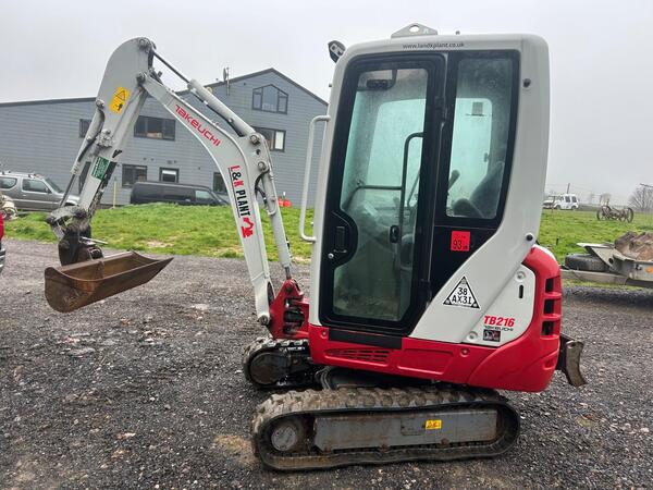 Takeuchi TB216 Mini Digger 1.6 ton, 2018 Very good digger, great reach for its size. Year 2018 Low hours - 2817 Pins & bushes are good 4 good buckets Good rubber tracks Expanding tracks 2 speed tracking Piped fo...