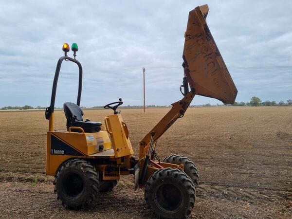 Thwaites 9 Tonne Dumper – 4x4 (2012) Year: 2012 Hours: 3,532 hrs Drive: 4x4 Transmission: Forward/Reverse Shuttle Features: Folding Roll Bar, Road Registered Description: A well-maintained Thwaites 9 Tonne 4x...