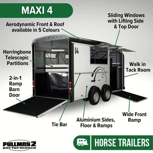 Cheval Liberté MAXI Herringbone Four Horse Trailer – Designed for Comfort, Space, and Performance The Cheval Liberté MAXI Herringbone is a robust and versatile horse trailer, designed to comfortably accommodate t...