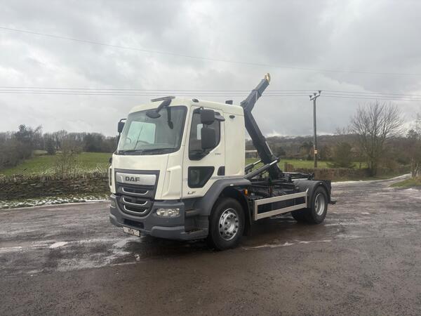 2018 DAF LF 260 4x2 Rest Cab Hookloader Fitted with a Adjustable High and Low Sliding Hook Euro 6 Beacons Work lights Camera System Air conditioning Night Heater Cruise control Exhaust Brake Multifunctional Steeri...