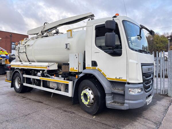 2019 19 DAF LF 230 EURO 6 Whale medium volume Jet/Vacuum tipping tanker, gully arm, NP30 jet pump, 3/4" rear hose, 1/2" side hose with hand lance, mistral vac pump, pipe racks, stainless lockers, grid lifter, came...