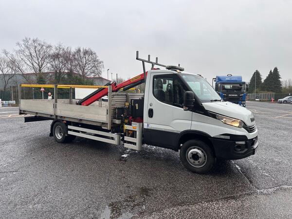 Year 2020 Iveco Daily 7C18 Fitted with a 4.9m dropside body complete with fall arrest and dual control Palfinger PK4200 crane Crane details – 420kg @ 8m, 500kg @ 6.4m, 710kg @4.9m, 990kg @3.4m Work lights,beacon...